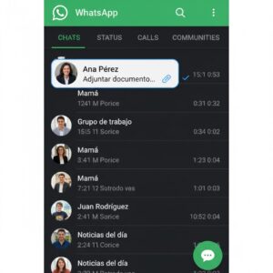 Abre WhatsApp y dirígete a la conversación donde quieres enviar el documento. Puede ser un chat individual, grupal o incluso tu espacio personal de mensajes guardados.