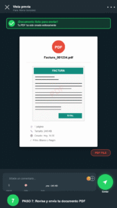 Presiona el botón de enviar (✈️). Tu contacto recibirá el archivo en formato PDF, listo para: